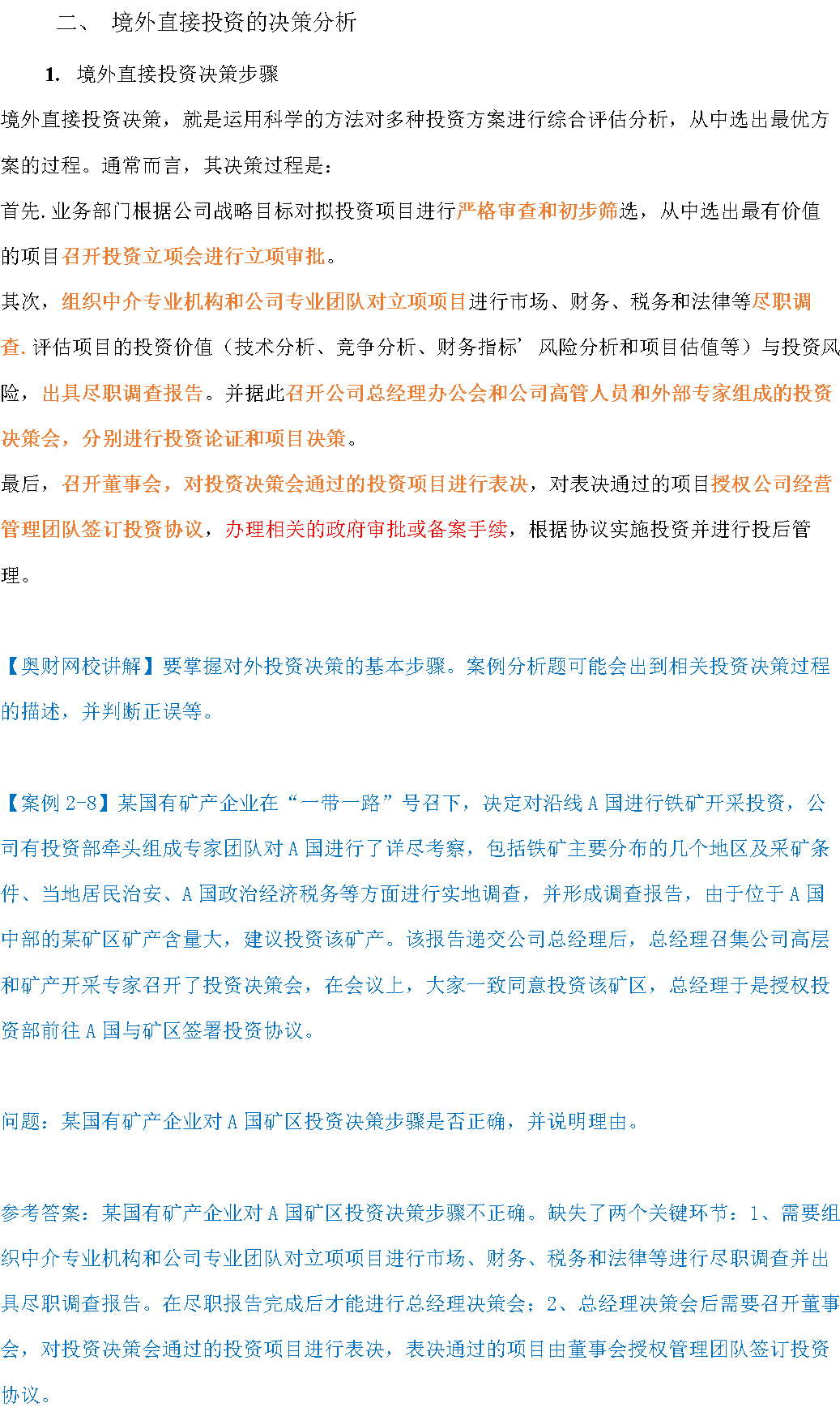 奧財(cái)網(wǎng)校2020年高級(jí)會(huì)計(jì)實(shí)務(wù)考試輔導(dǎo)突破重難點(diǎn)系列:境外直接投資決策分析與評(píng)價(jià)指標(biāo)
